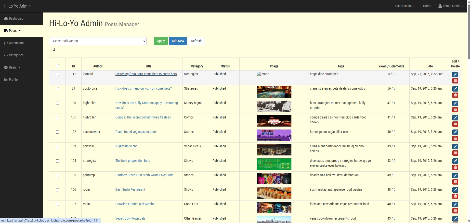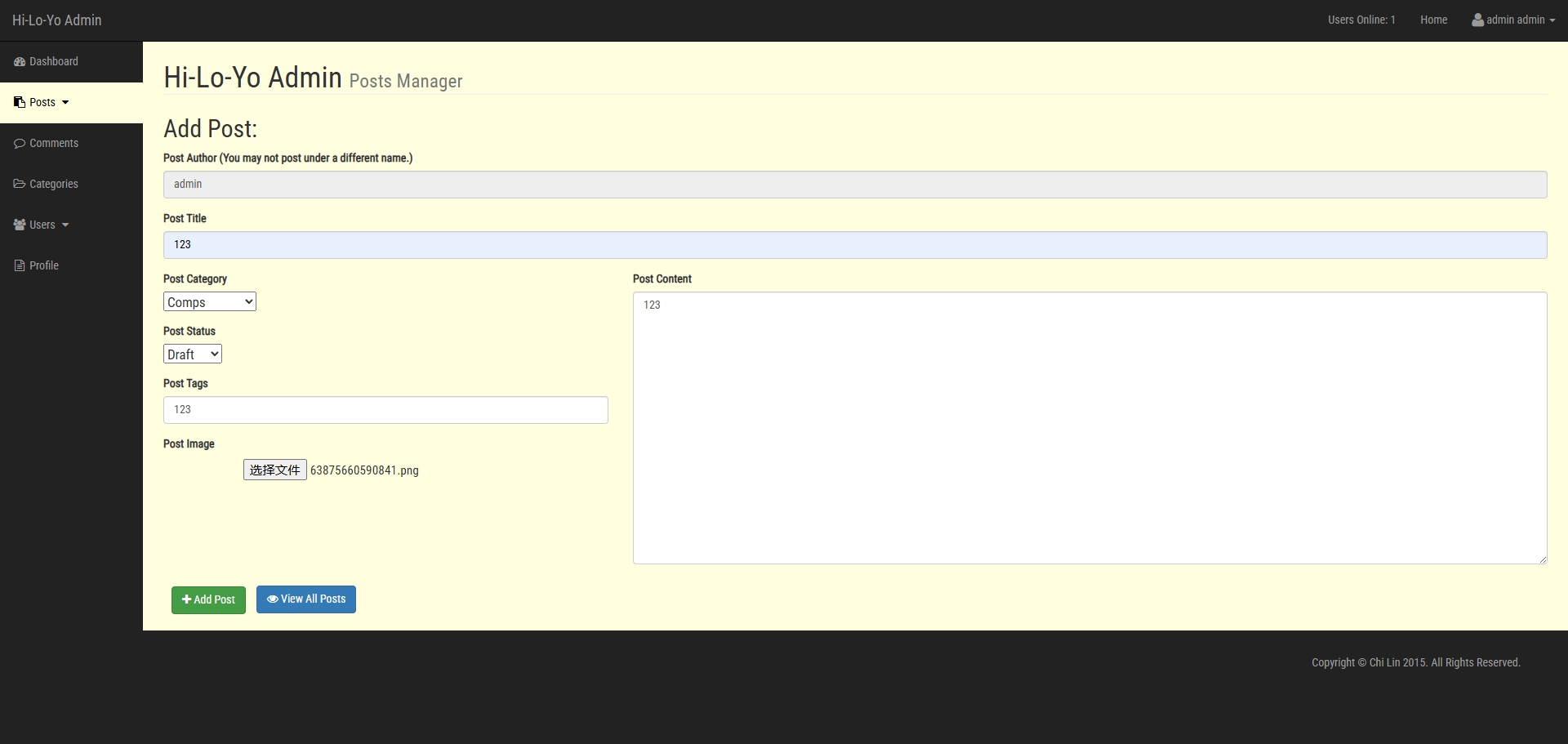 首先在Posts页面罗列了所有网页上的post,并且提供了添加Post页面,但是尝试后发现这个功能无法正常使用