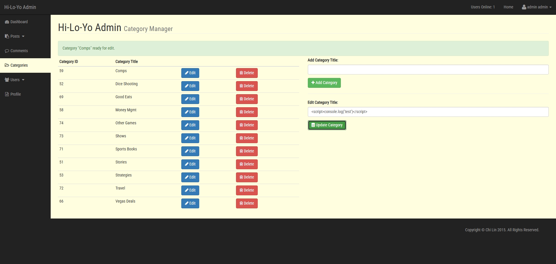 该页面可以修改Category的Title值,尝试发现存在XSS漏洞