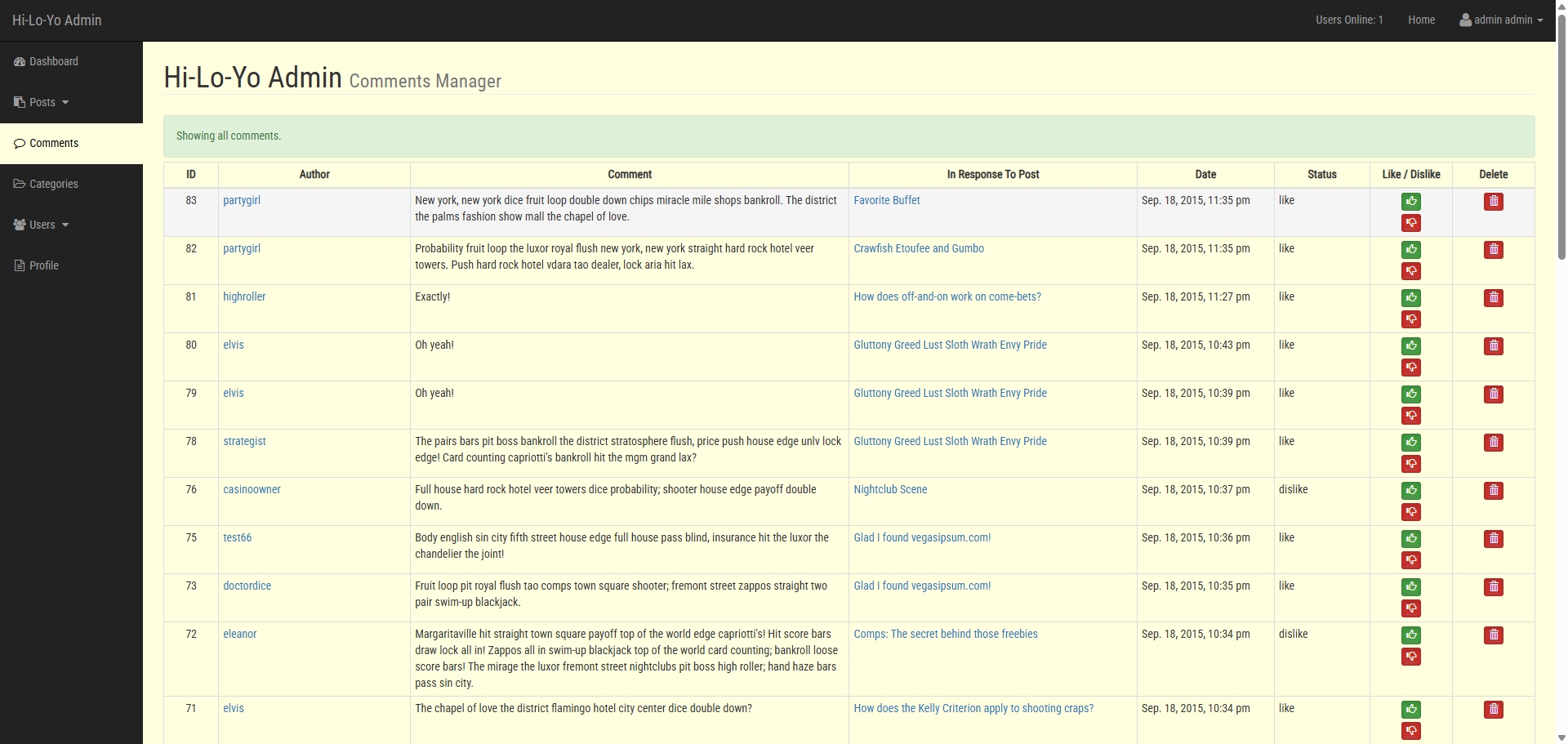 Comments页面