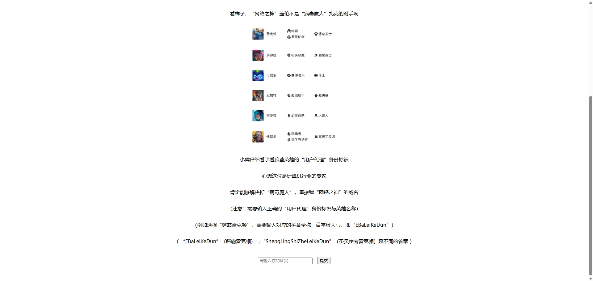 根据提示我们需要更改他的User-Agent属性为正确的内容,一个一个尝试直到User-Agent: GaoJiGongChengShiFoYeGe成功得到下一个地址